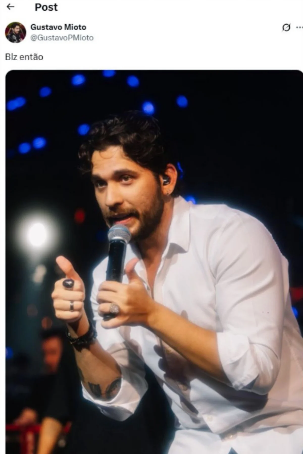 Post de Gustavo Mioto que foi apagado após polêmica.Reprodução/X.