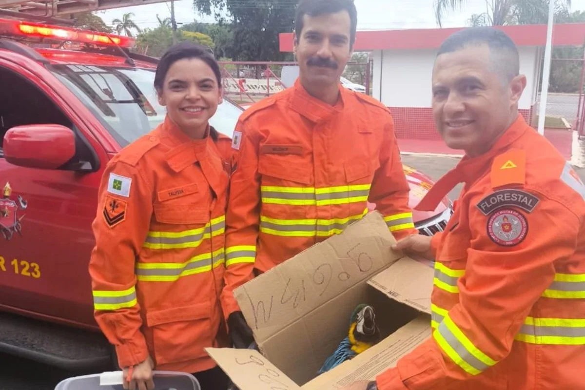 Arara cai de árvore, se machuca e é resgatada pelo Corpo de Bombeiros
