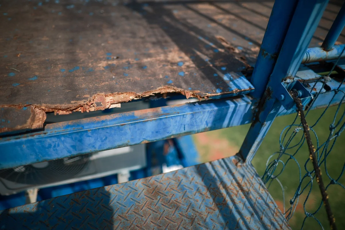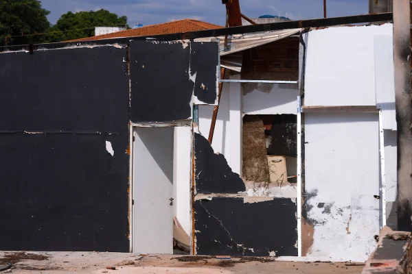 Ferro retorcido e madeira deteriorada levam perigo a quem passa pelas cabines de rádio e televisãoLuis Nova/Especial Metrópoles