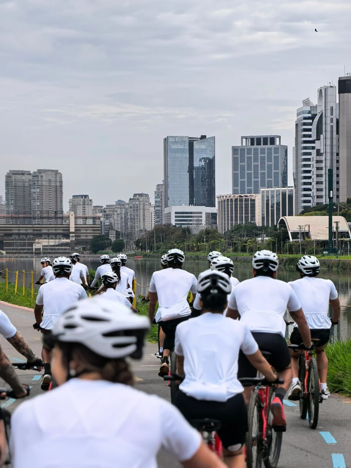 Ciclistas se reúnem em evento global da Huawei, em São Paulo