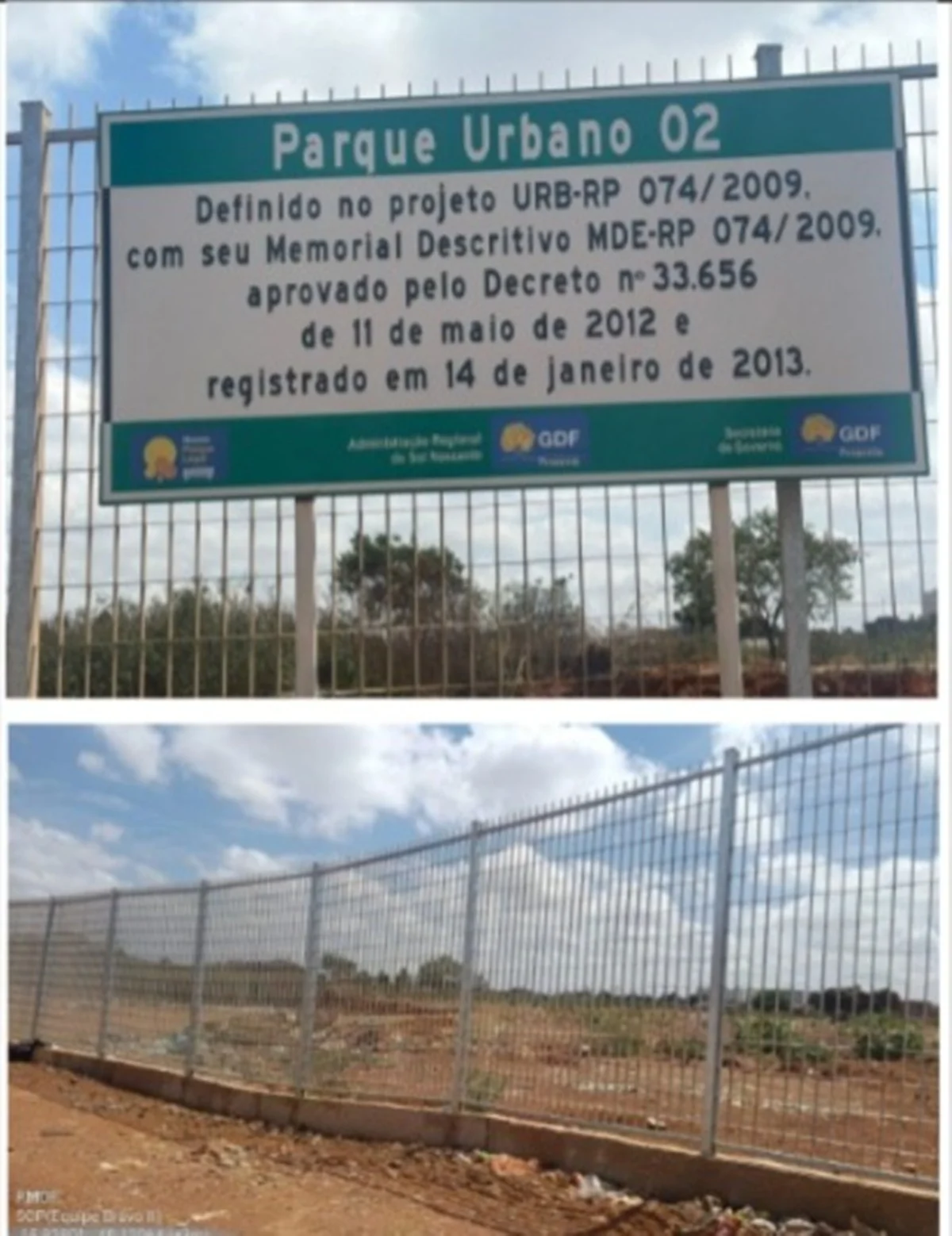 De acordo com a DF Legal, o local é destinado à instalação do Parque Urbano II — contando com cercamento e uma placa de aviso — e está localizado em em Área de Preservação Permanente (APP).
