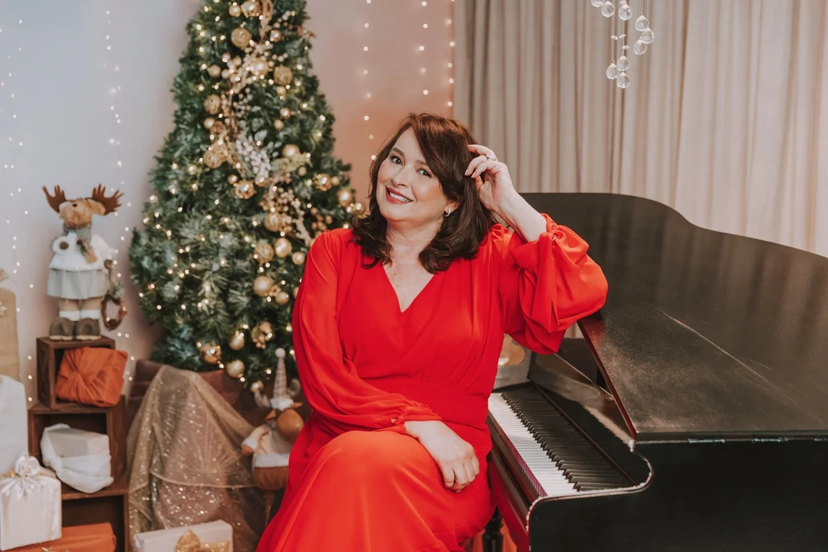 Myrian Rios posa ao lado de uma árvore de NatalRenata Kelly / Criativa Pix/Divulgação