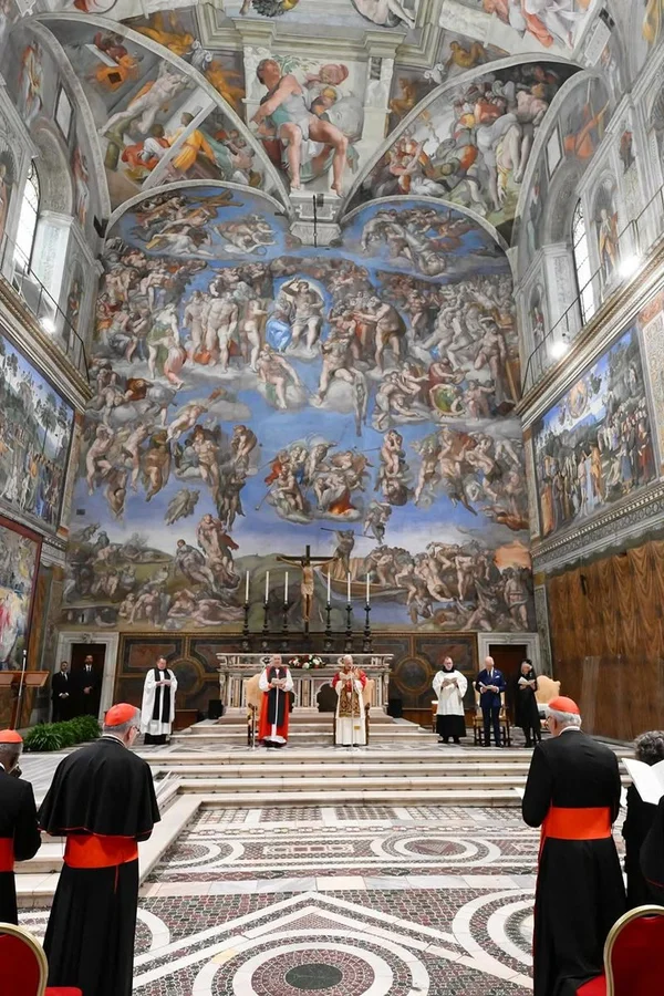 Momento da cerimônia ecumênica na Capela SistinaVatican Media/@royalfamily/Reprodução/Instagram