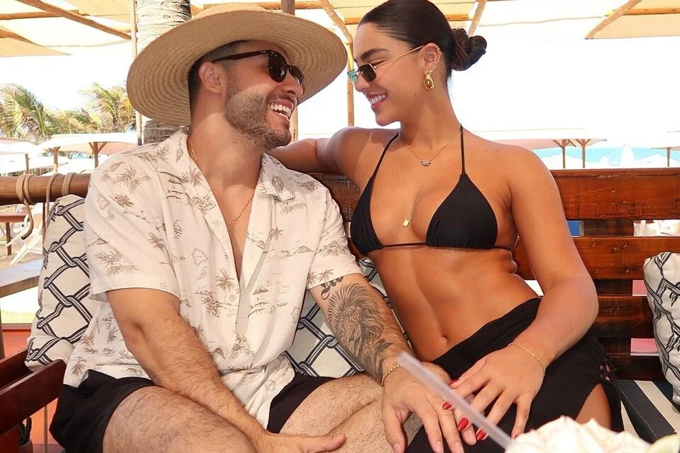 O casal assumiu o namoro em junho de 2023. O cantor é pai de Leo, de 5 anos, de seu relacionamento com a cantora Marília Mendonça, que morreu aos 26 anos em um acidente de avião em 2021.