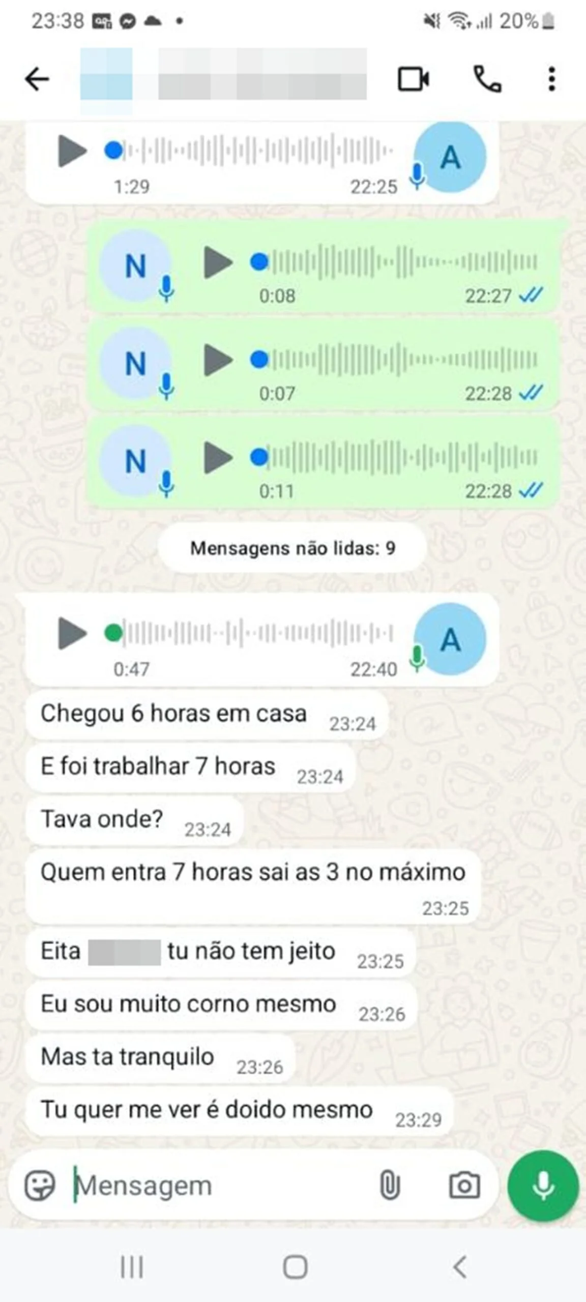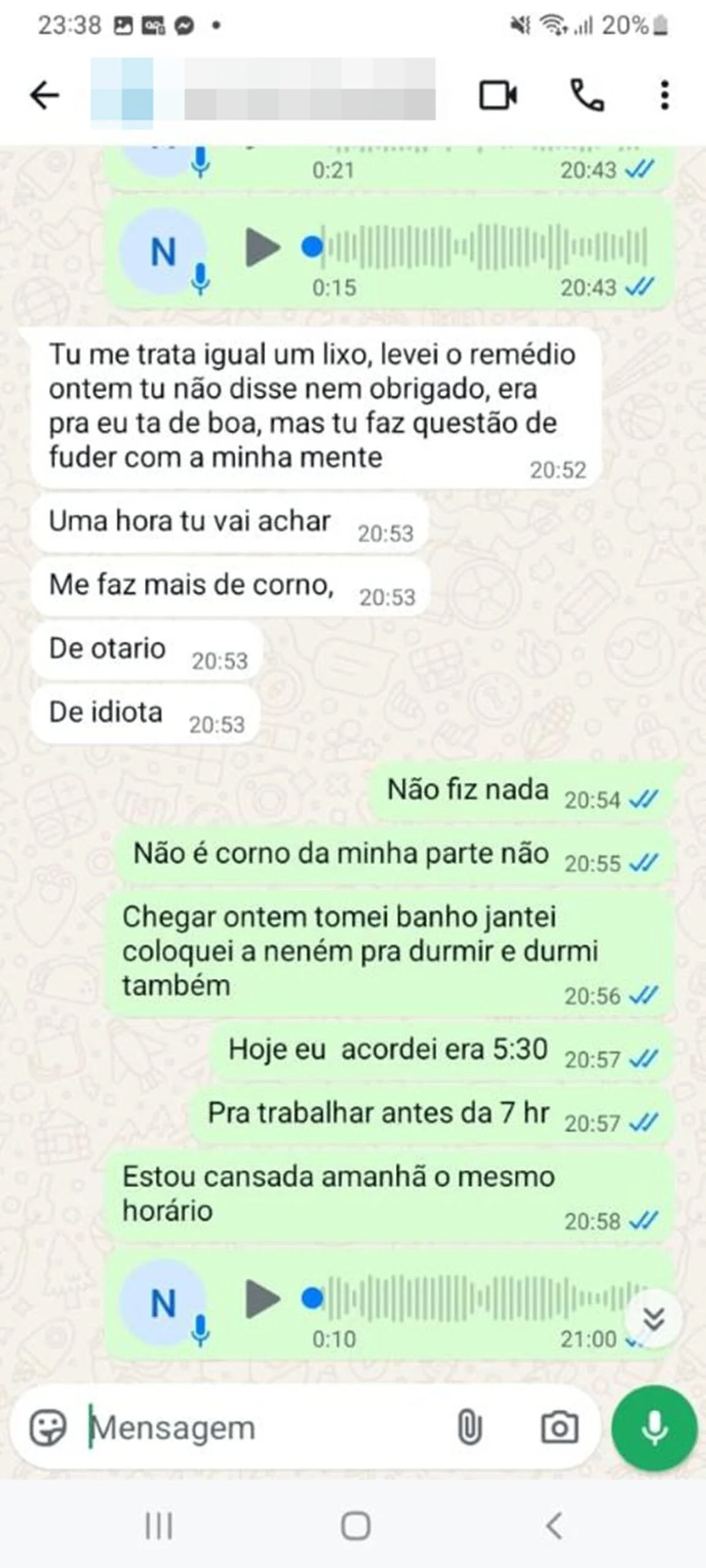 Segundo a delegada Tamires Teixeira, titular da Delegacia Especializada no Atendimento à Mulher (DEAM) de Águas Lindas, a vítima registrou o boletim de ocorrência pois o autor, após a separação, passou a persegui-la, enviando áudios e mensagens, desde às 3h de quarta-feira (12/11), com ofensas e ameaças de morte contra ela, sua mãe e seu irmão.