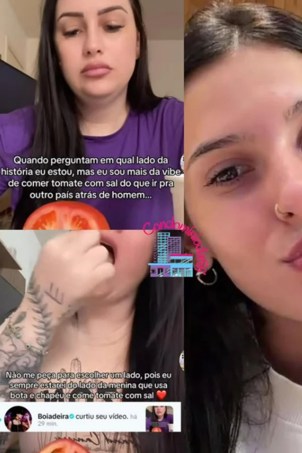 No conteúdo, a internauta escreveu: “Quando perguntam em qual lado da história eu estou, mas eu sou mais da vibe de comer tomate com sal do que ir pra outro país atrás de homem…”.