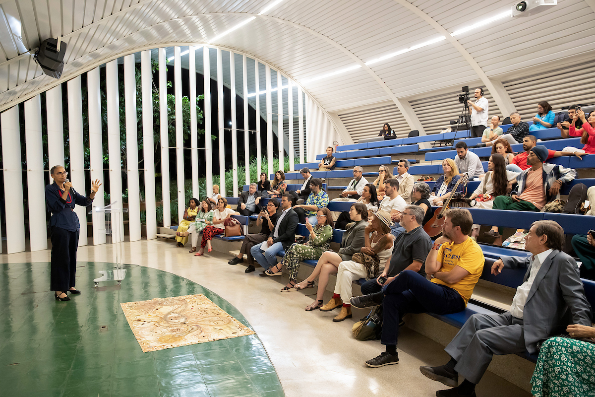Na plateia, Claudia Meireles, Regina Fittipaldi; ministra do Meio Ambiente e Mudança do Clima, Marina Silva; Maria Paula Fidalgo; e Ulisses Riedel