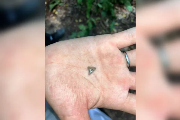 Dente de tubarão perfurado, utilizado como adorno Reprodução/Anderson Marques