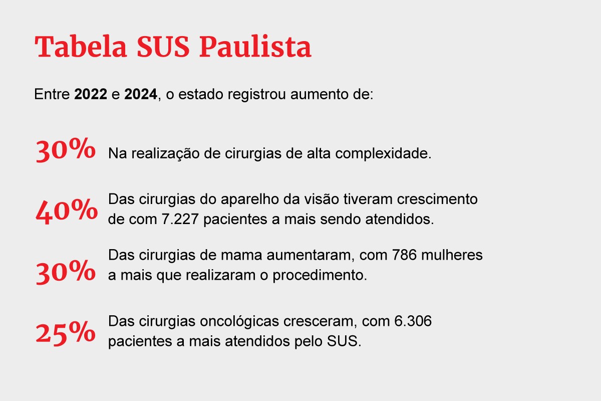 Para mudar essa situação, a Tabela SUS Paulista foi criada em 2024 pelo Governo do Estado de São Paulo como um complemento. De acordo com a Secretaria da Saúde, o governo do estado acrescenta recursos próprios ao que já é pago pela tabela do Governo Federal.