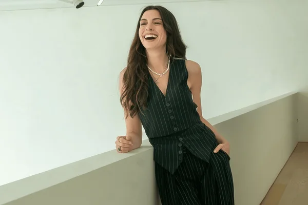 A atriz foi vista usando o look de alfaiataria no set de filmagens externas em Nova York@annehathaway/Instagram/Reprodução
