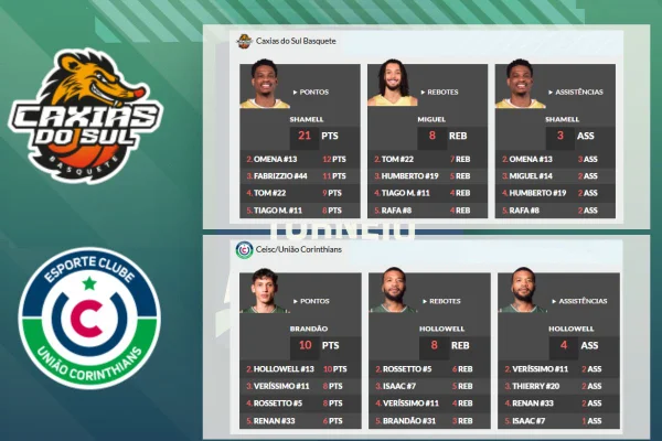 O treinador Rodrigo Silva se manteve irritado com o União Corinthians e pediu para a equipe competir e encarar a partida como um treino. O destaque ficou com Omena, do Caxias, que encaixou arremessos e somou pontos. As duas equipes arriscavam bolas de três.