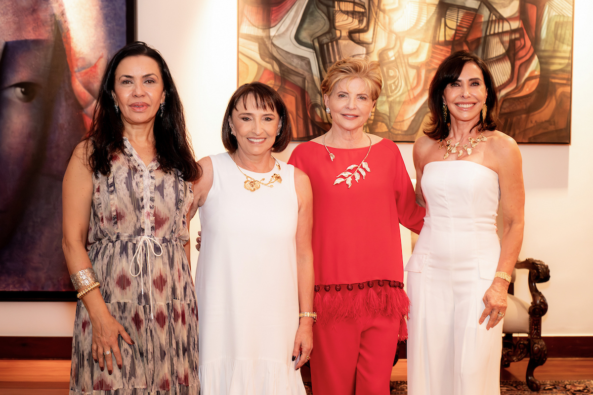 Lucília dos Anjos; Bertha Pellegrino; a embaixatriz da Argentina, Silvia Raimondi; a embaixatriz do Equador, María Augusta Velástegui; e Pompéia Addario