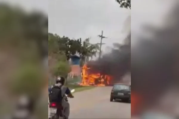Vídeo: ônibus escolar pega fogo com alunos dentro no interior de SP